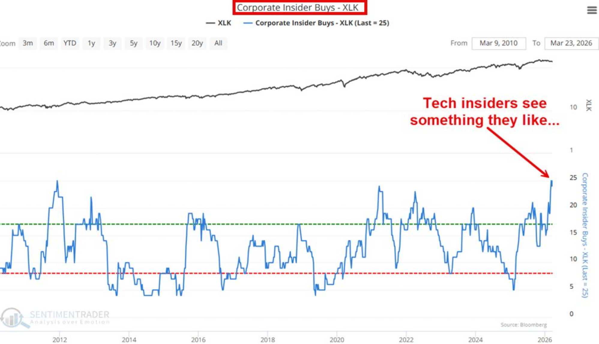 Medan marknadens aktörer i stort minskar sina tidigare höga allokeringar mot amerikanska Tech och AI-bolag väljer insiders i techbolagen att trycka stort på köpknappen. Varför skulle de köpa med båda händerna om de ser att AI är ett tema som är på väg att svalna?