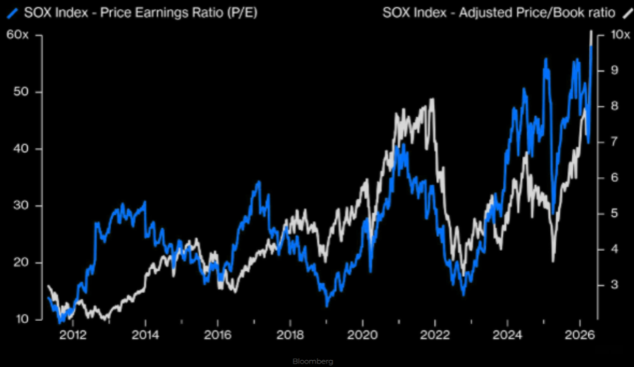 Semiconductors är nu “priced for perfection” på P/E 60x och Price/Book på 10x.