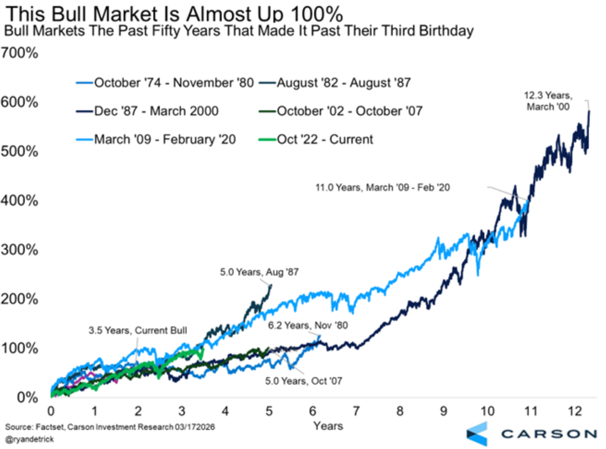 Dagens Bull Market är 3,5 år gammal nu och det är inte en speciellt gammal tjur sett till historiska uppgångar.