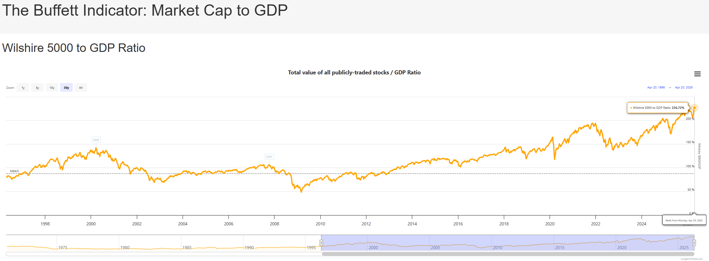 Däremot har vi å andra sidan aldrig haft en så här högt värderad marknad någon i historien sett till “The Buffett Indicator”