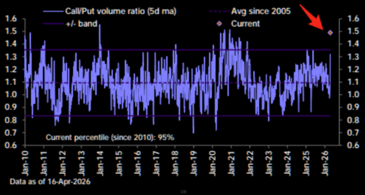 Investerare köper köpoptioner för glatta livet för att att inte missa uppgången. Volymen i köpoptioner jämfört med säljoptioner noteras nu i den 95:de percentilen med data från 2010 och tangerar därmed rekorden från 2021. Är det hållbart året ut? Troligtvis inte. Räkna med nya farthinder “down the road”!