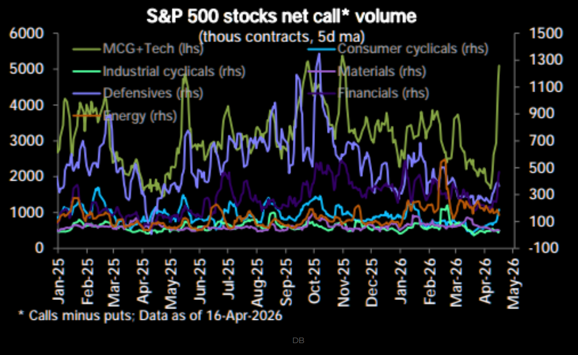 Sektormässigt är det främst intresset för köpoptioner inom Techbolag/Nasdaq som drivit merparten av volymen, vilket är en sektor som vi lyfte fram här på Marketmate innan rallyt (här).