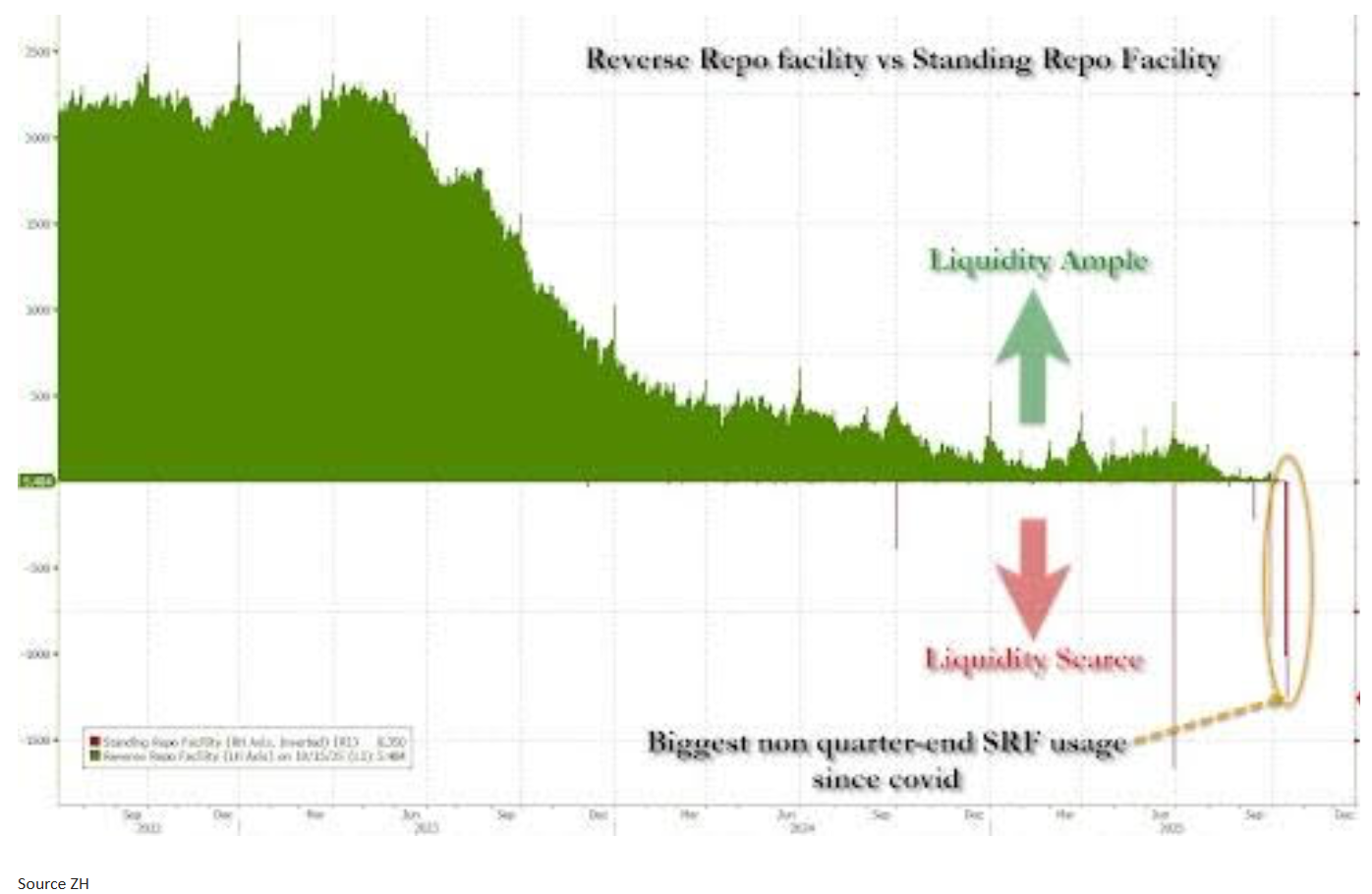 För att sammanfatta läget i det amerikanska banksystemet och Federal Reserve kan vi mycket väl komma att se en fullskalig panikvändning från FED, redan före jul. Med sänkningar på -50 bps istället för deras egen tro om -25 bps framöver (Fed FOMC 29 oktober, 10 dec, 27 jan och 17 mars). Med omedelbart stoppat QT-program och en återinföring av likviditet i repo-marknaden genom kvantitativ lättnad (QE), även om Fed kommer att kalla det för något annat än just QE. Det sätter igång sedelpressarna på nytt. “Printing Press goes Brrrrrrrrrr”, som de säger på X. Vi är inte där än, men det kommer.