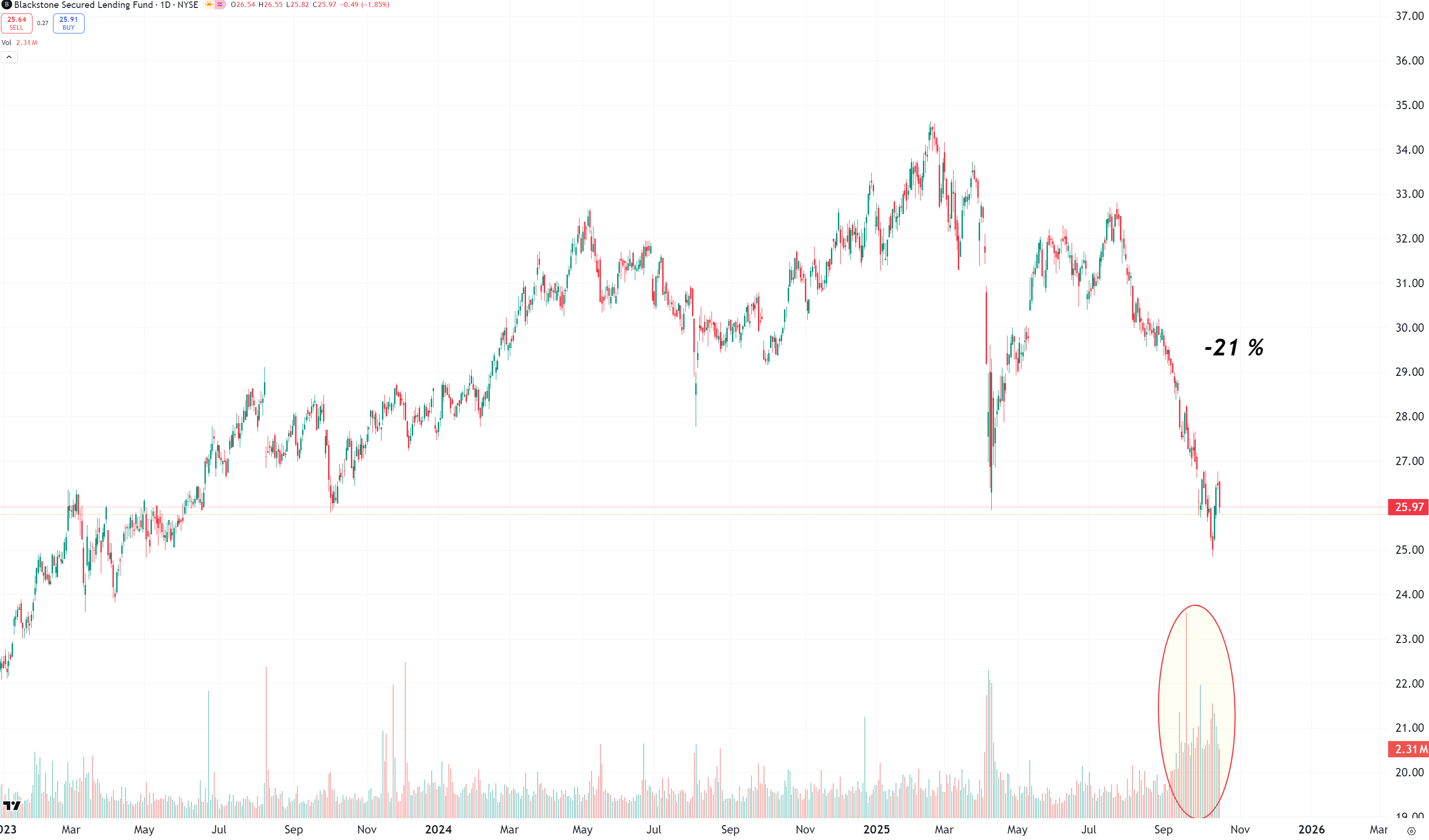 Blackstone Secured Leding Fund är ner -21% från den 19 september och handlas på samma nivå som vid kraschen i april.