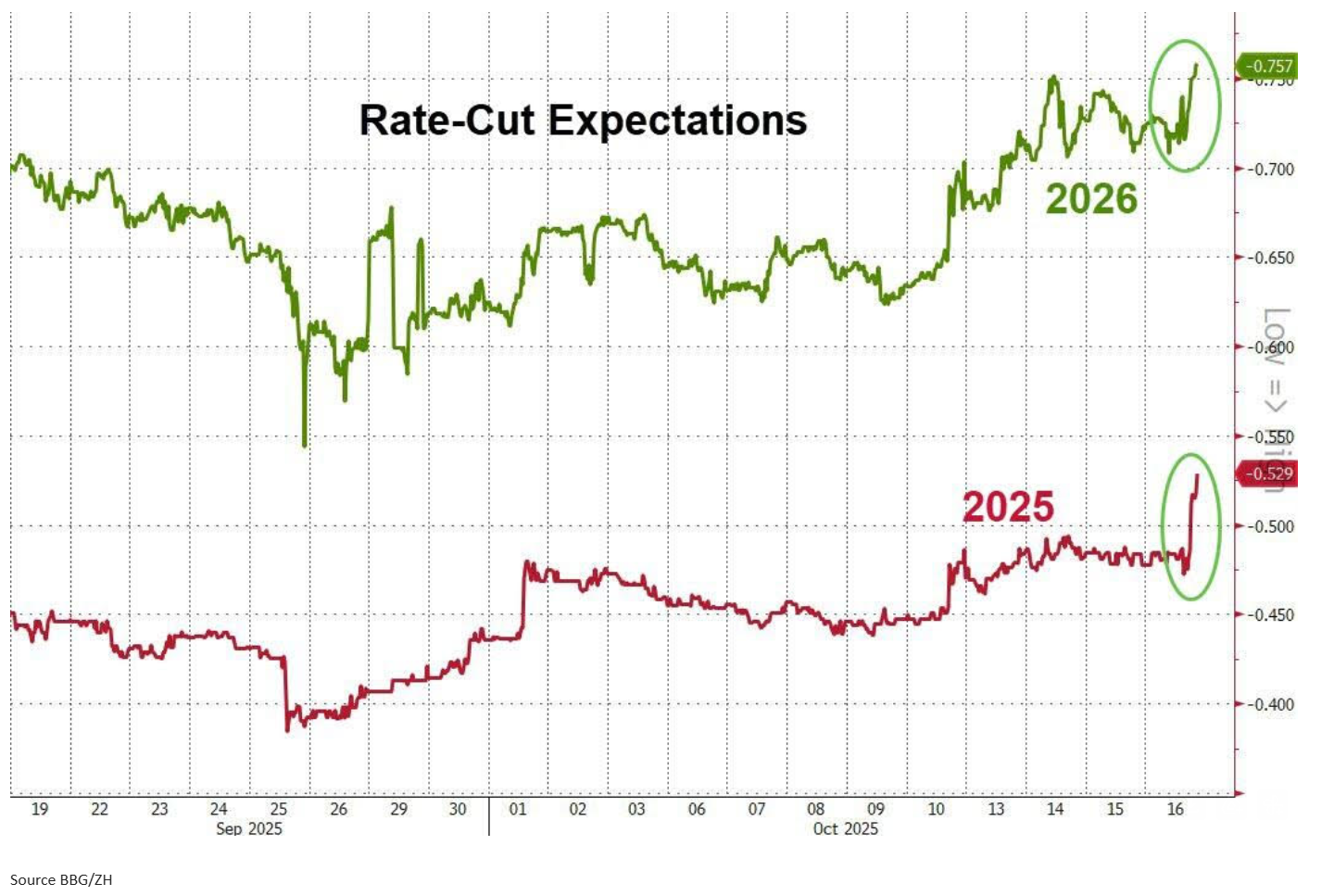 Som en följd av ovan beskrivning av nuvarande likviditetskris har också förväntningarna om sänkta räntor ökat denna vecka.