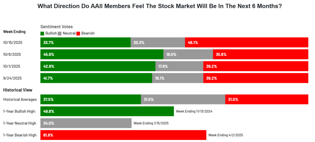 Andelen Bears inom AAII Sentiment Survey har ökat markant denna vecka på nytt till 46,1%. Nothing change sentiment as price.