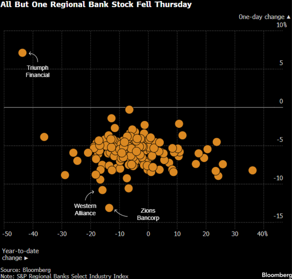 Faktum är att samtliga regionala banker för kraftigt under gårdagens handel, alla utom en.
