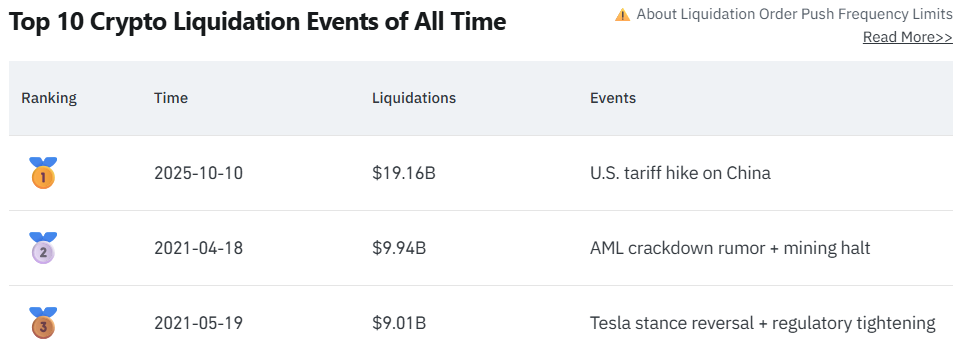 Bitcoin och kryptovalutor är som bekant otroligt känsliga för riskaptit och likviditet och det är också inom detta område som vi sett störst nedgångar senaste veckorna, med brutala likvideringar som följd. Enligt data från Coinglass likviderades 19,16 bn USD inom krytpovalutor på raset den 10 oktober där många traders förlorade alla sina besparingar.