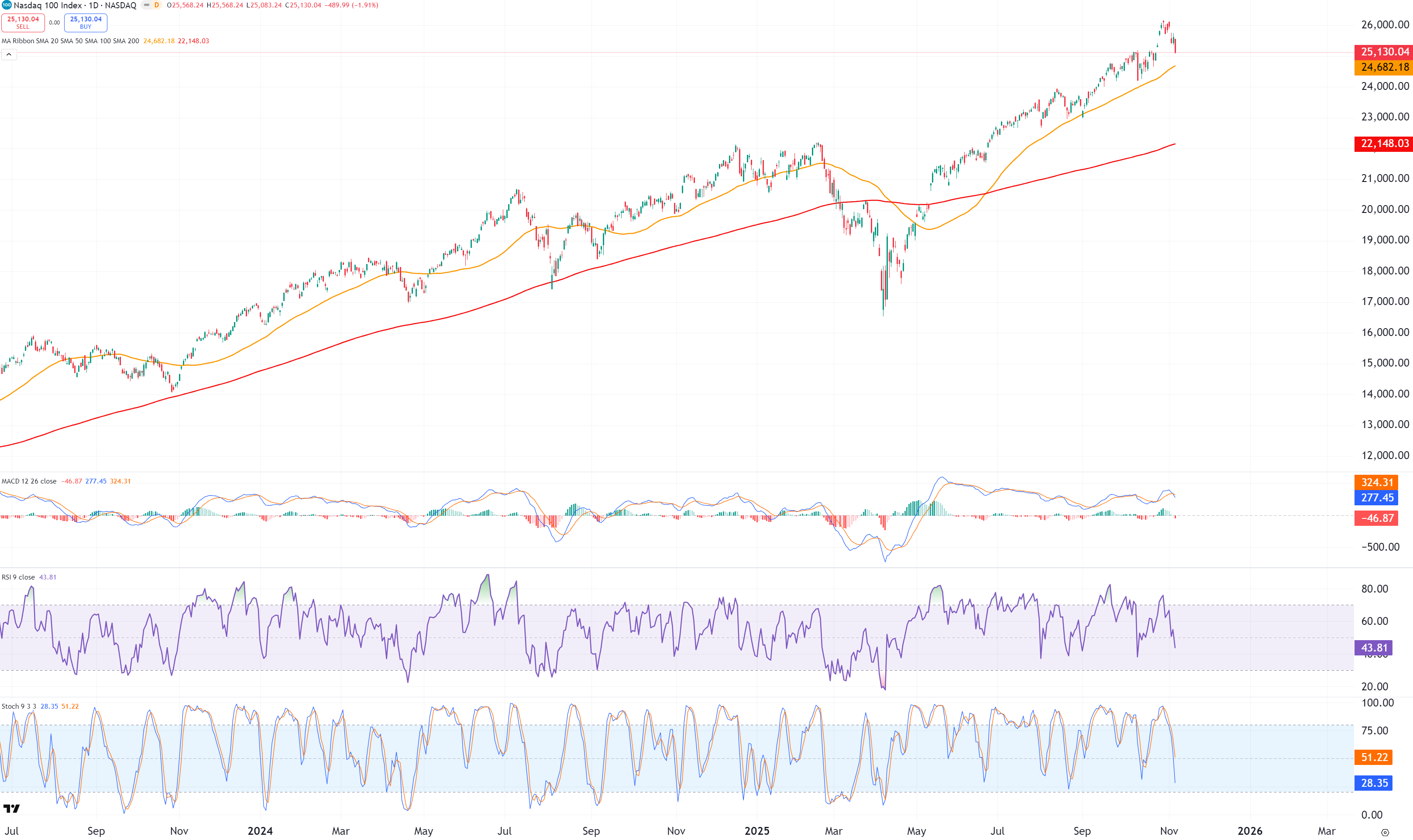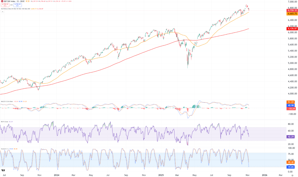 Under veckan har vi publicerat två längre artiklar kring nuvarande likviditetsbrist i USA: Förklaring till nuvarande likviditetskris och Government shutdown över nästa vecka?! och givet den extrema selektiviteten vi såg under förra veckan (här), eleverad positionering i USA, extremt stor efterfrågan på ETFer med hävstång, rekordhöga värderingar när Tech/AI-bolag inkluderas och det inte så konstigt att börserna skakar. Vi ska inte heller bortse från att det endast kvarstår faktum 7,5 börsveckor av börsåret 2025. Bara den effekten gör att många passar på att skala hem en del av årets vinster för at säkra resultatet i förvaltningen. Skulle däremot börserna ta ny styrka nu från mitten av november kommer vi också se en förnyad jakt på performance mot nyår då förvaltarna inte vill prestera sämre än jämförelseindex och branschkollegor.