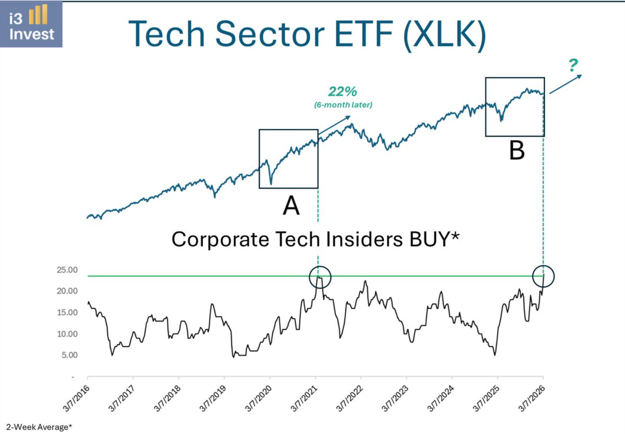 Att marknaden är så pass negativ till amerikanska techbolag står i skarp kontrast till insiders på samma bolag som ser den senaste tidens svaghet som ett köptillfälle. Intressant!