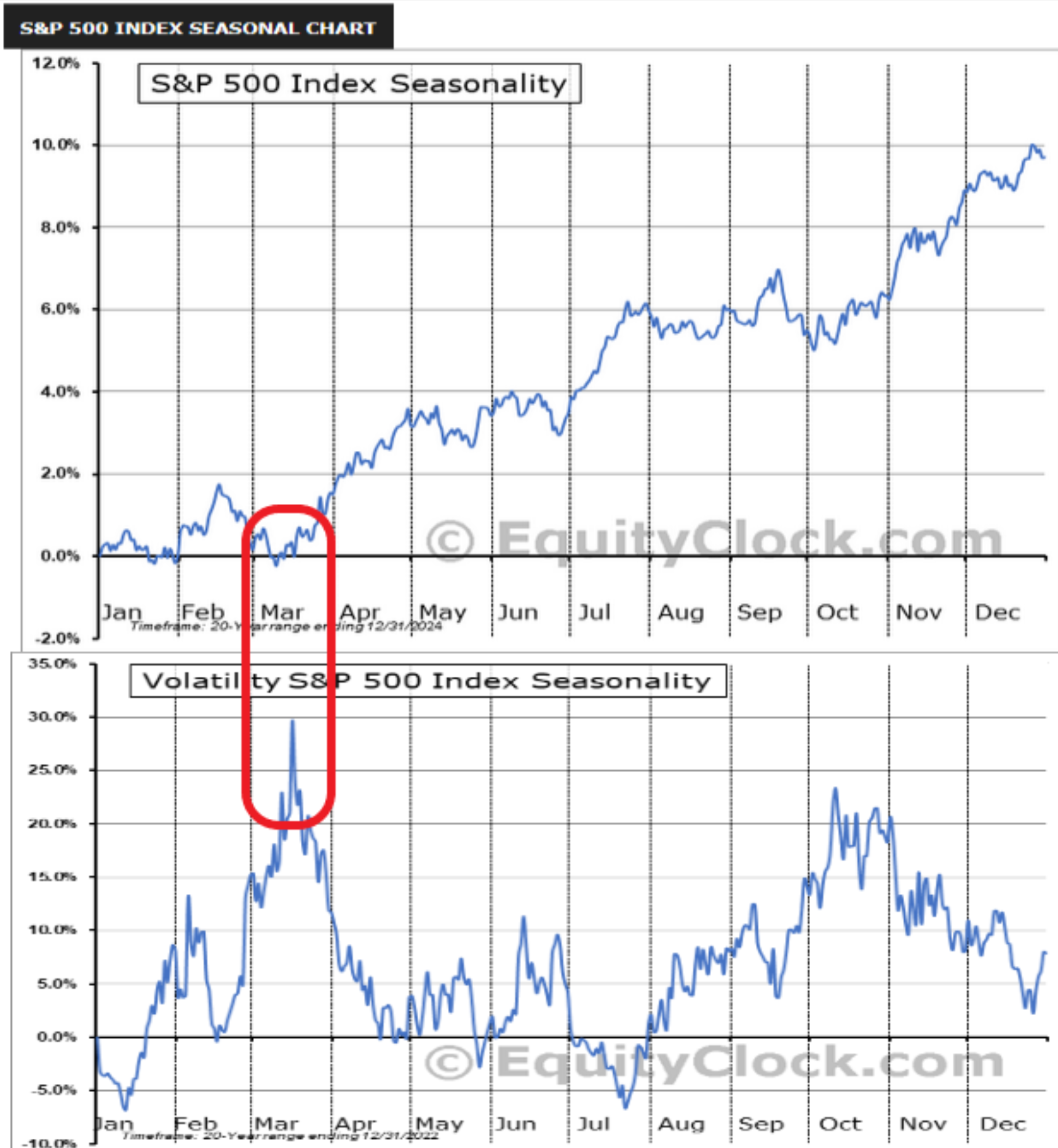 Vi avrundar helgens inlägg med en påminnelse om säsongsmönstret de senaste 20 åren, där S&P 500 vanligtvis bottnar i mitten av mars samtidigt som VIX toppar. Worse case får vi ytterligare någon/några dagar med fortsatt kortsiktig svaghet under nästa vecka, men med en vy på 1-3 månader bör det löna sig att addera aktieexponering på svaghet här ifrån! Famous last words.. ? 😉