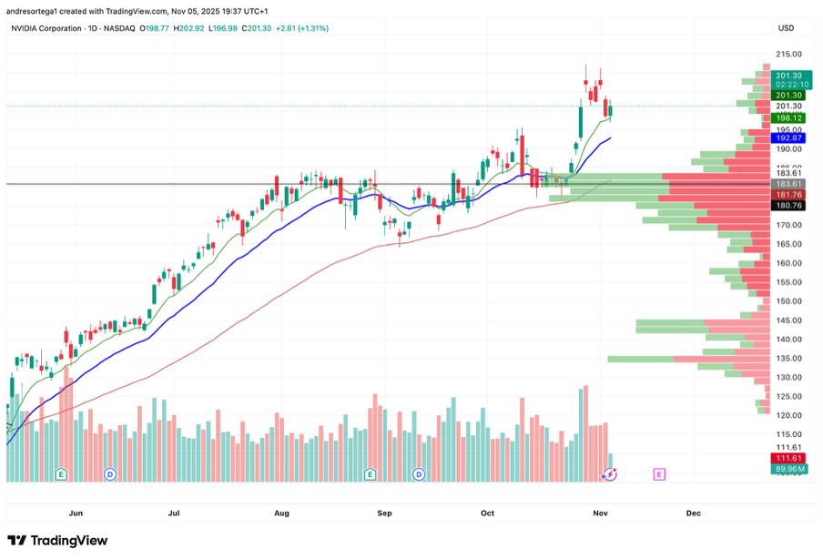 NVIDIA (NVDA) förblir den teknologiska spjutspetsen i den nya automatiseringsekonomin. Aktien handlas kring 200 USD med stark volym, efter att ha konsoliderat över 180 USD och brutit igenom 200 USD-nivån vilket speglar en rörelse som markerar ökat institutionellt intresse och ett sammandraget motstånd runt 210 USD. Diagrammet visar högre bottnar och ökande volym, vilket indikerar att robotik och maskininlärning inte bara är hype – utan ett verkligt investeringscase. Med stöd kring 180–190 USD och nästa potentiella målzon på 225–240 USD står NVDA mitt i korsningen mellan robotik och AI-infrastruktur.