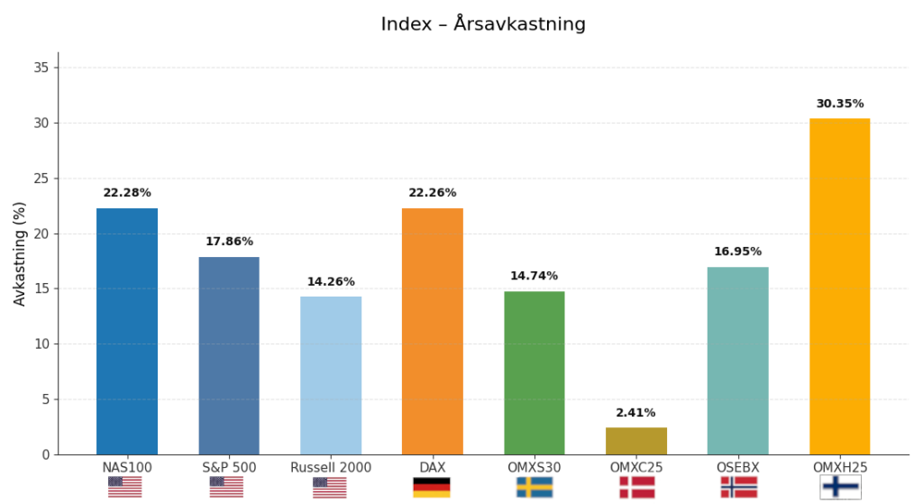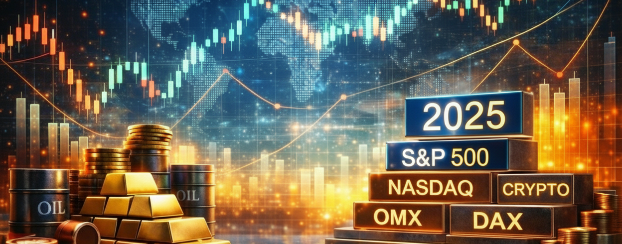 2025 närmar sig sitt slut och det är dags att summera året. Hur har det gått för olika sektorer, index, aktier, råvaror och andra finansiella tillgångar?