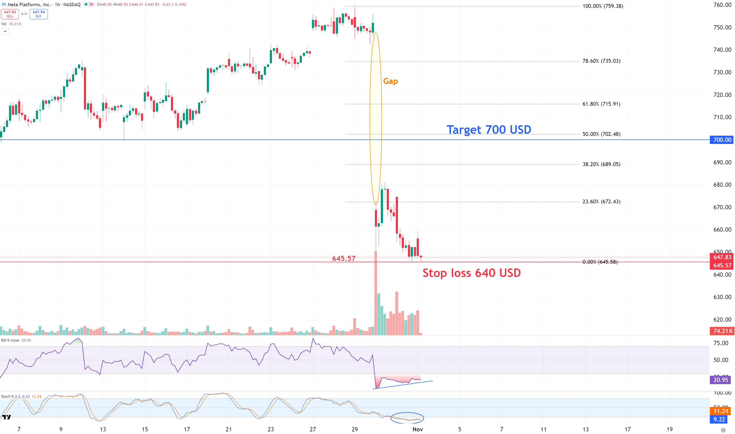 Vi väljer att återbesöka/bottenmeta Meta här igen på tredje dagen efter rapportraset där aktien fallit -13,3% sedan noteringen innan kvartalssiffrorna. Vi stängde vårt förra köpcase i Meta den 27 oktober med totalt +10,39 % i vinst.