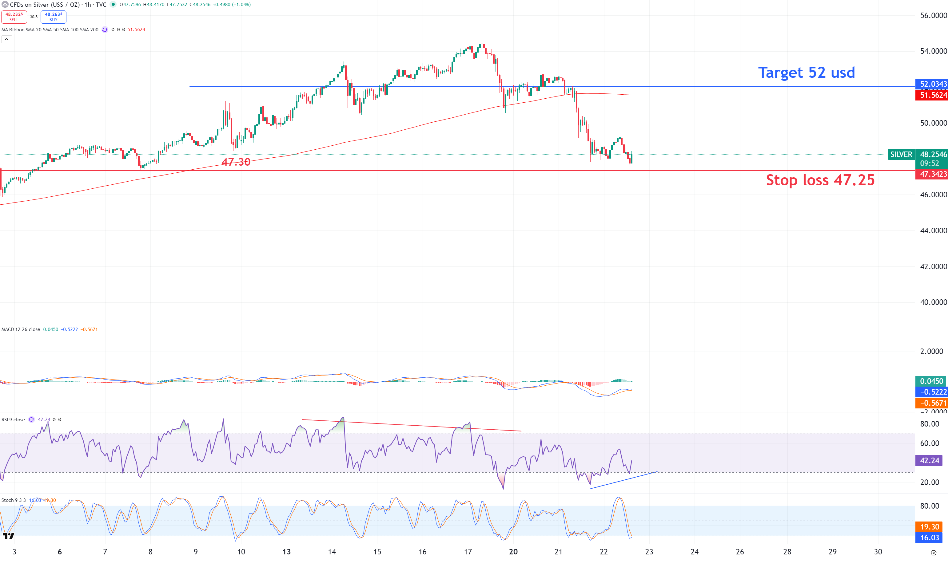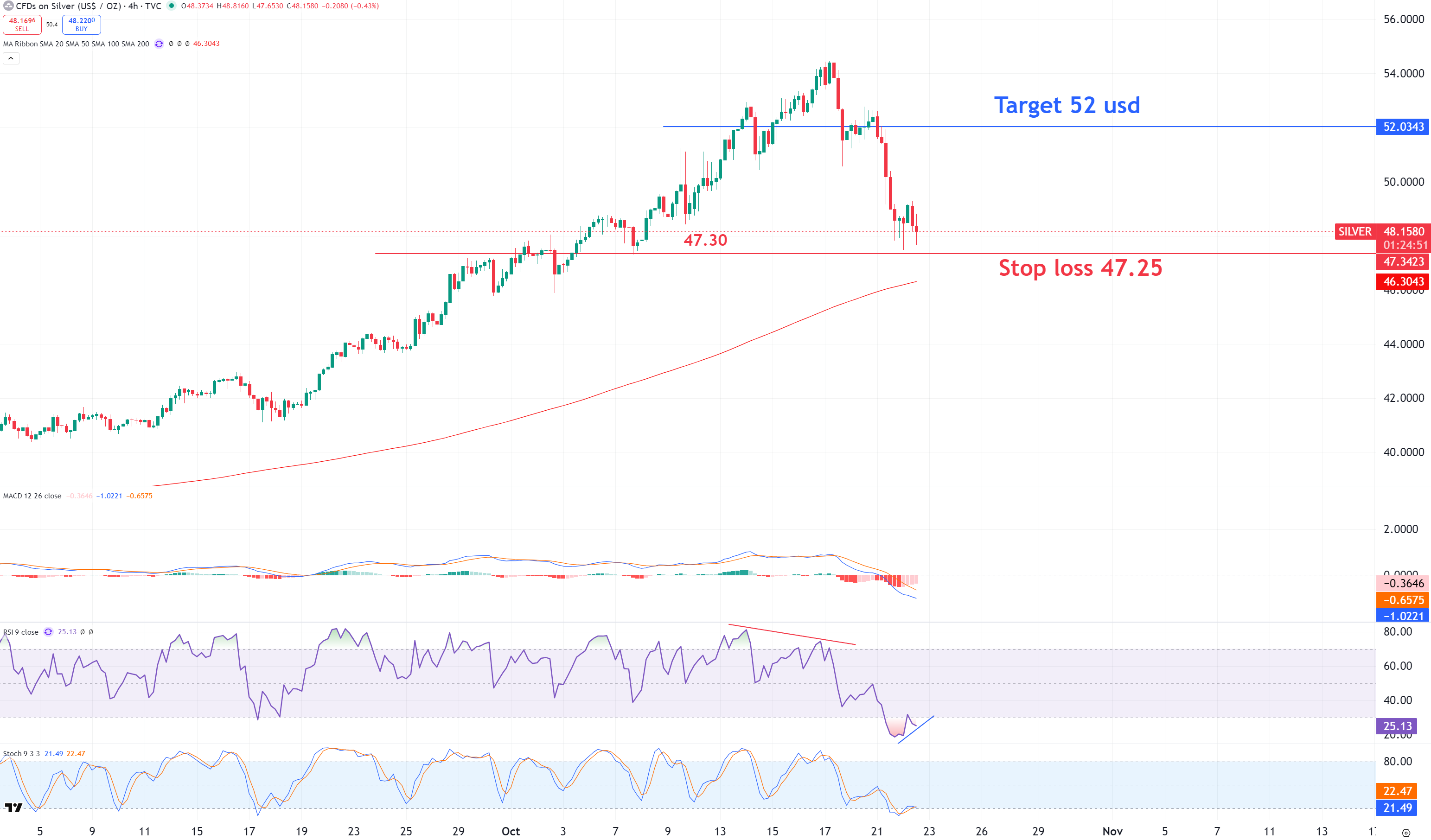 Rallyt i ädelmetallerna fick ett abrupt slut i fredags och gårdagen bjöd på extrema nedgångar där priset på silver föll hela -9% på 24h. På kort sikt i 1h och 4h grafen ser vi nu positiva divergenser i silver, vilket kan antyda att nedgången avtar i styrka.