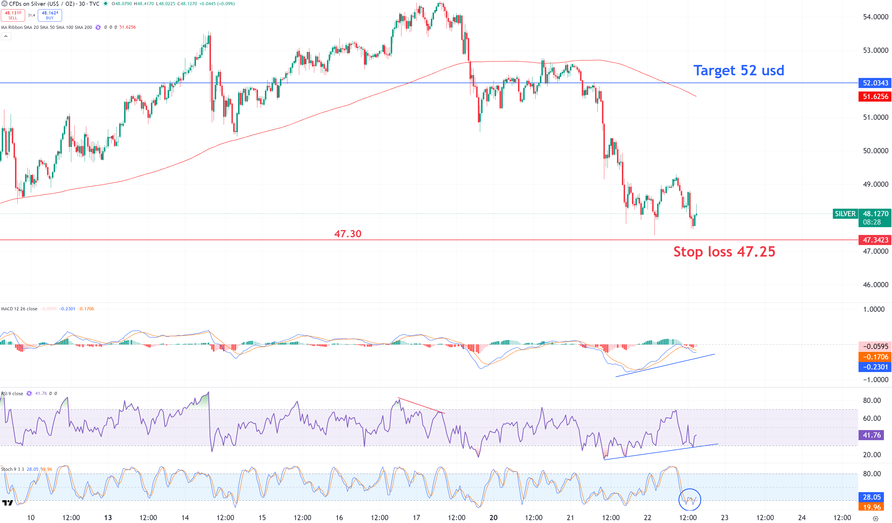 Stop lossen placeras tajt till 47,25 usd (-2,0%), vilket är strax under stödområdet på 47,30 usd. På uppsidan ser vi en återgång till 52 usd (+7,9%) kommande veckan.