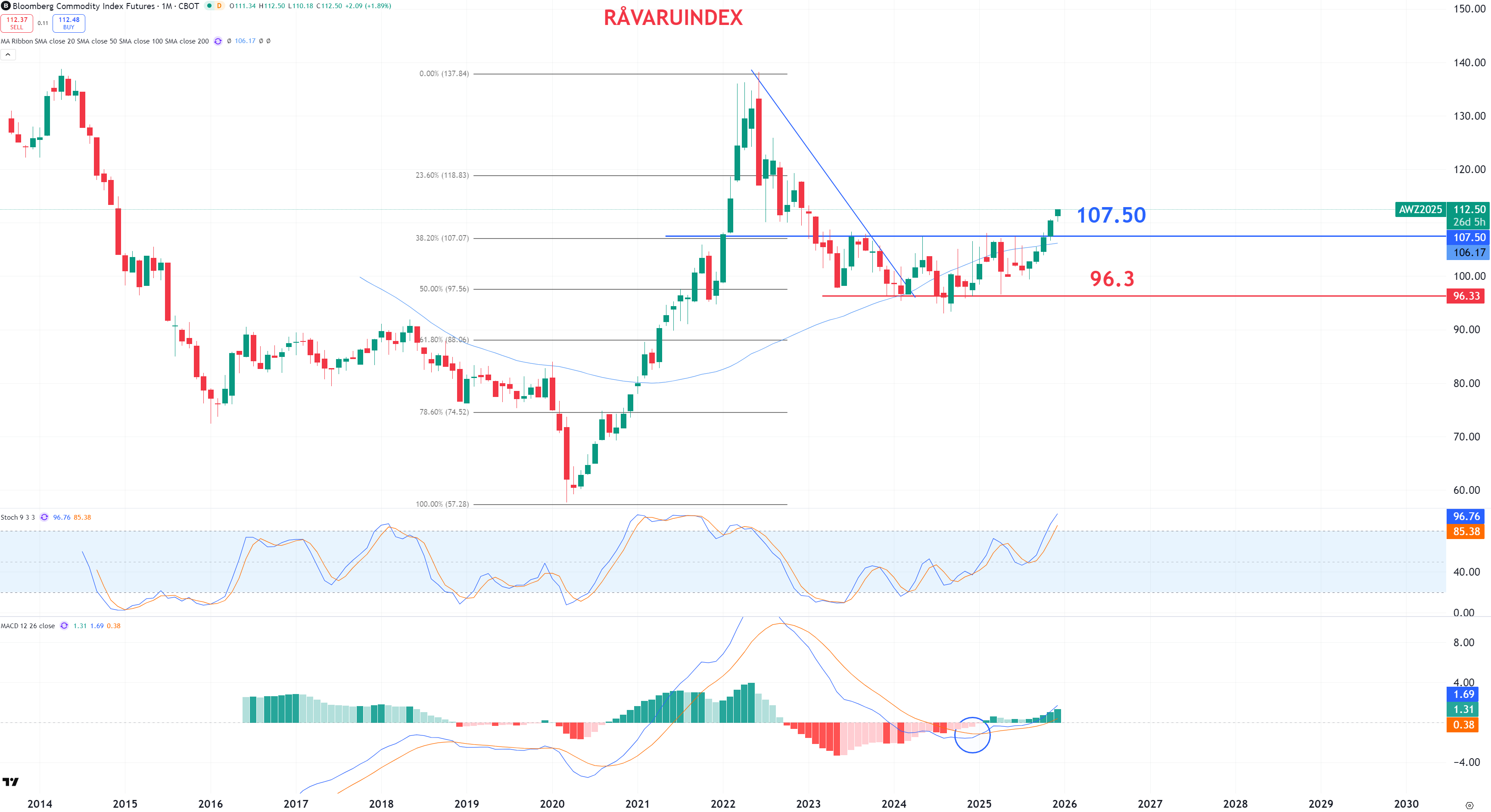 Fin Breakout i Råvaruindex i månadsgrafen.