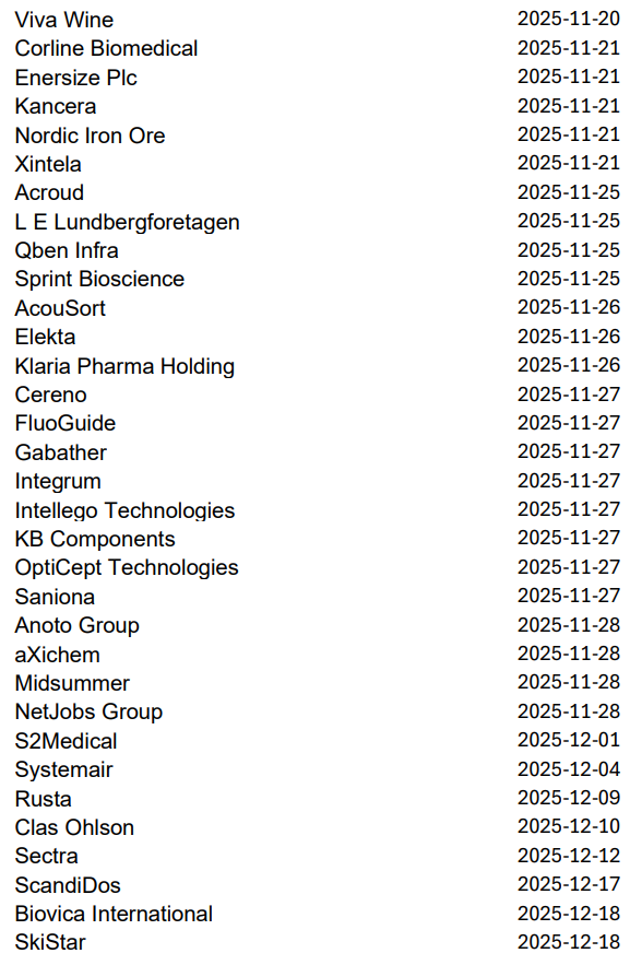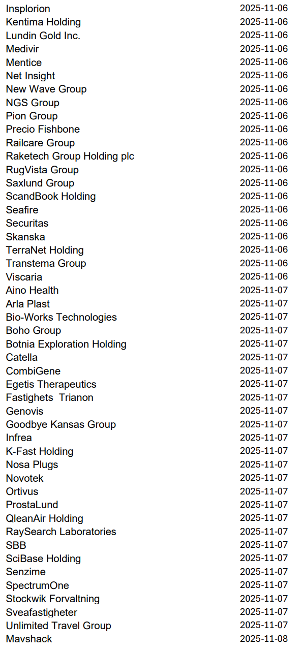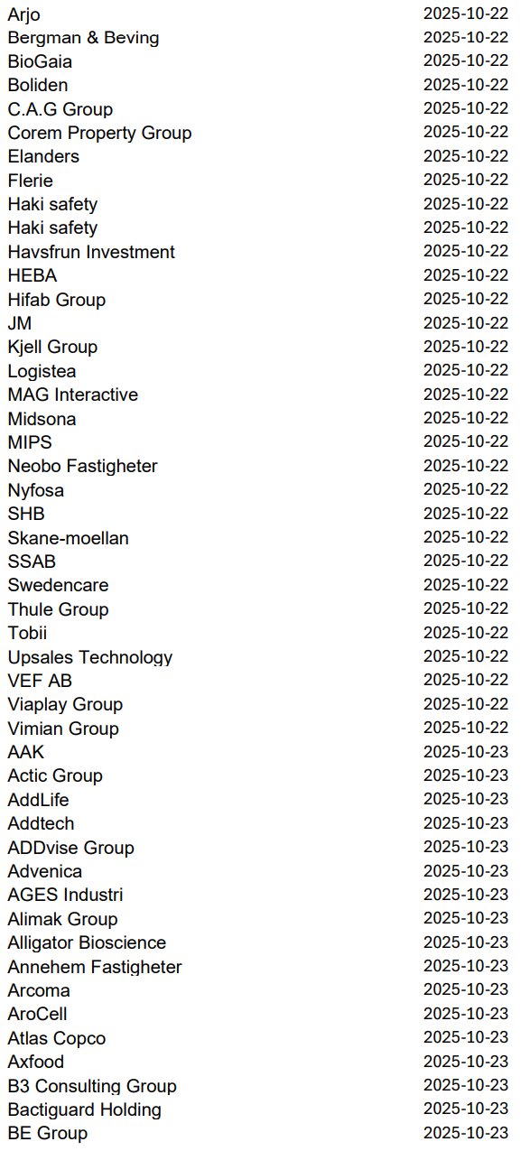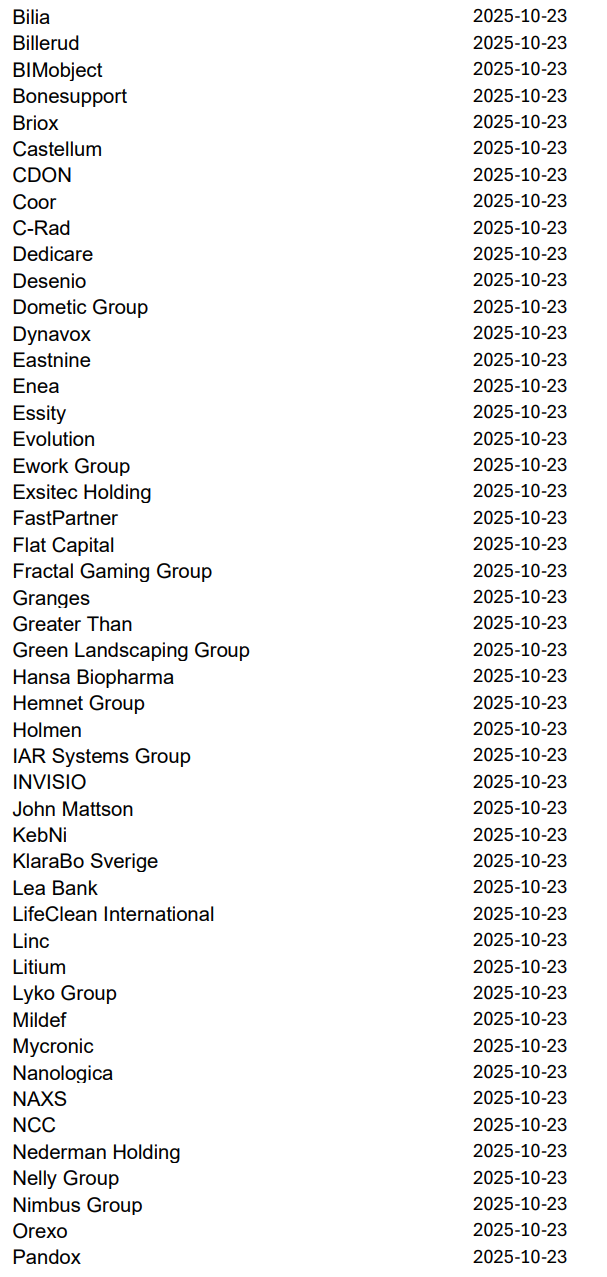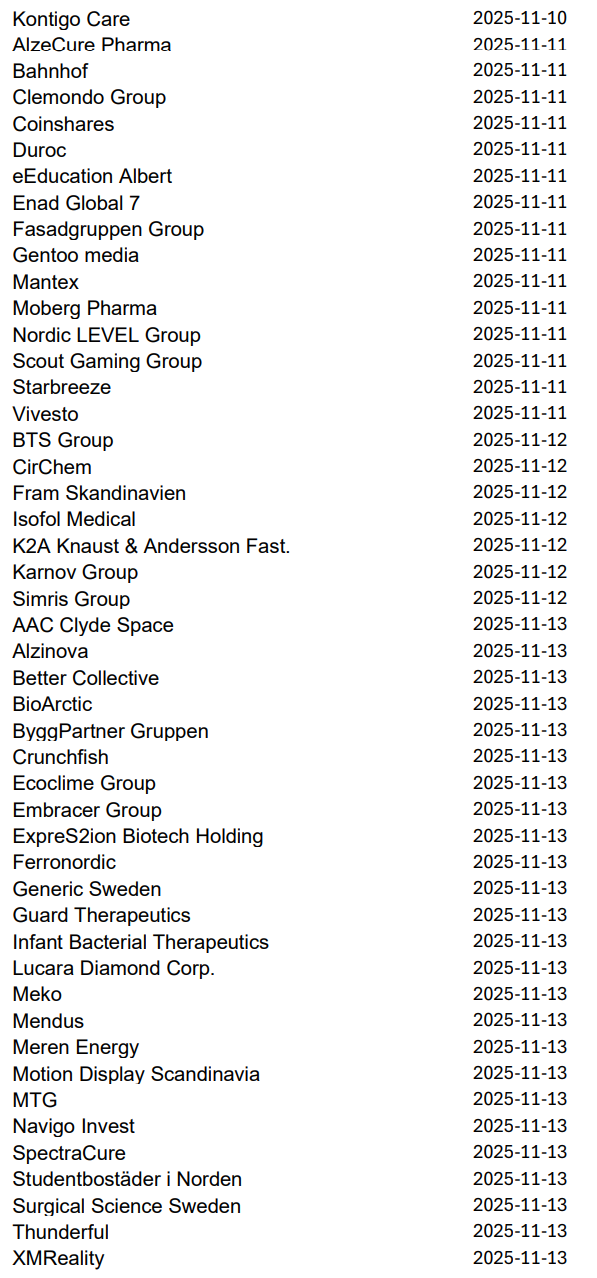 Imorgon rapporterar bland andra Volvo, Avanza, Autoliv, NP3 och Norion Bank, men nästa vecka släpper 219 svenska bolag sina kvartalsrapporter innan höstlovet. Då blir det korvstoppning på riktigt.