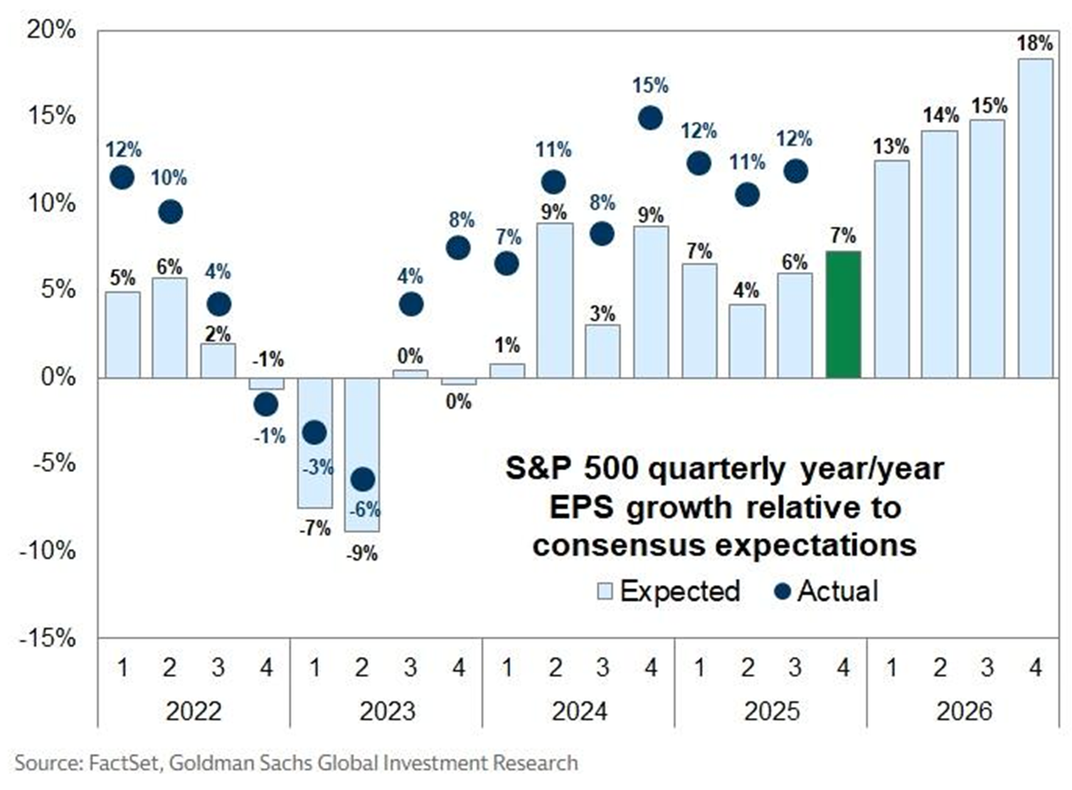 För den stundande rapportperioden ser konsensus +7% i EPS-tillväxt, medan de främst har spänt bågen för 2026 med vinsttillväxt på +13 % – 18 % under samtliga kvartal.