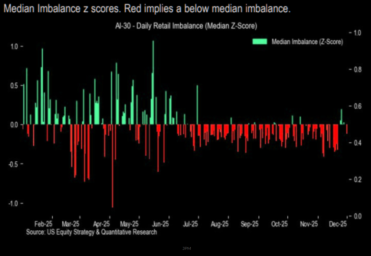 Sektormässigt har retail traders nettosålt inom AI i stort sett varje dag sedan i juli.