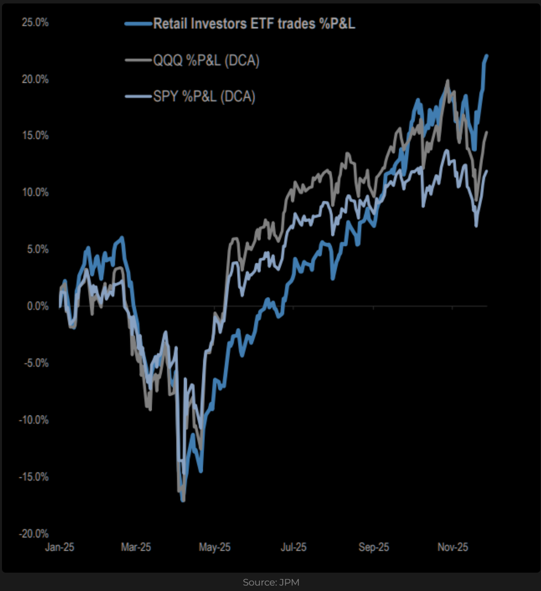 Om “retail investors” skulle vara en ETF hade den utklassat både S&P 500 och Nasdaq 100 med råge i år. Något att fundera på när många ser retail som “dumb money”.