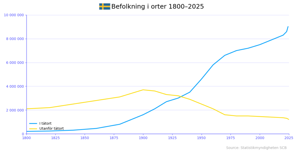 Vi fortsätter att se ökningar av personer som flyttar till tätorter år efter år. Många flyttar dit eftersom det oftast innebär större chans till jobbtillfällen, högre lön, närhet till service, bekvämligheter, utbildning, kollektivtrafik, fritidsintressen och starkare infrastruktur. Detta har varit den drivande faktorn bakom de stora prisökningarna för bostäder i våra svenska storstäder såsom Stockholm, Göteborg och Malmö.