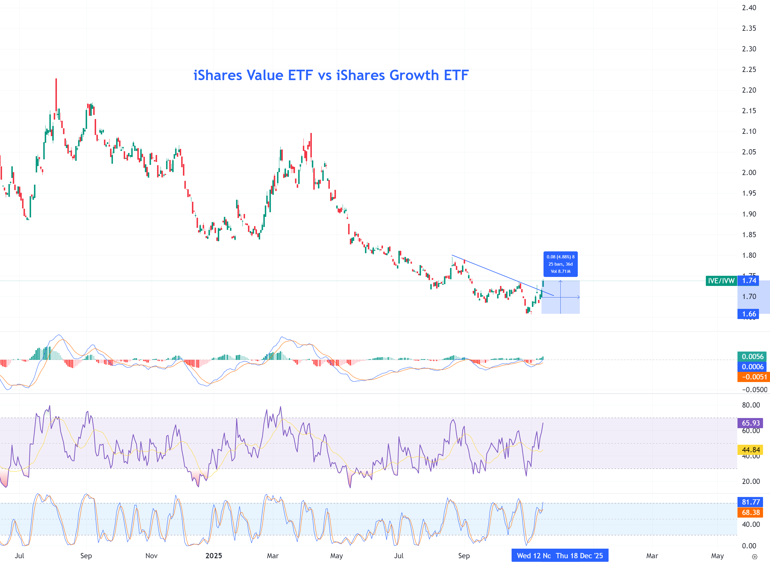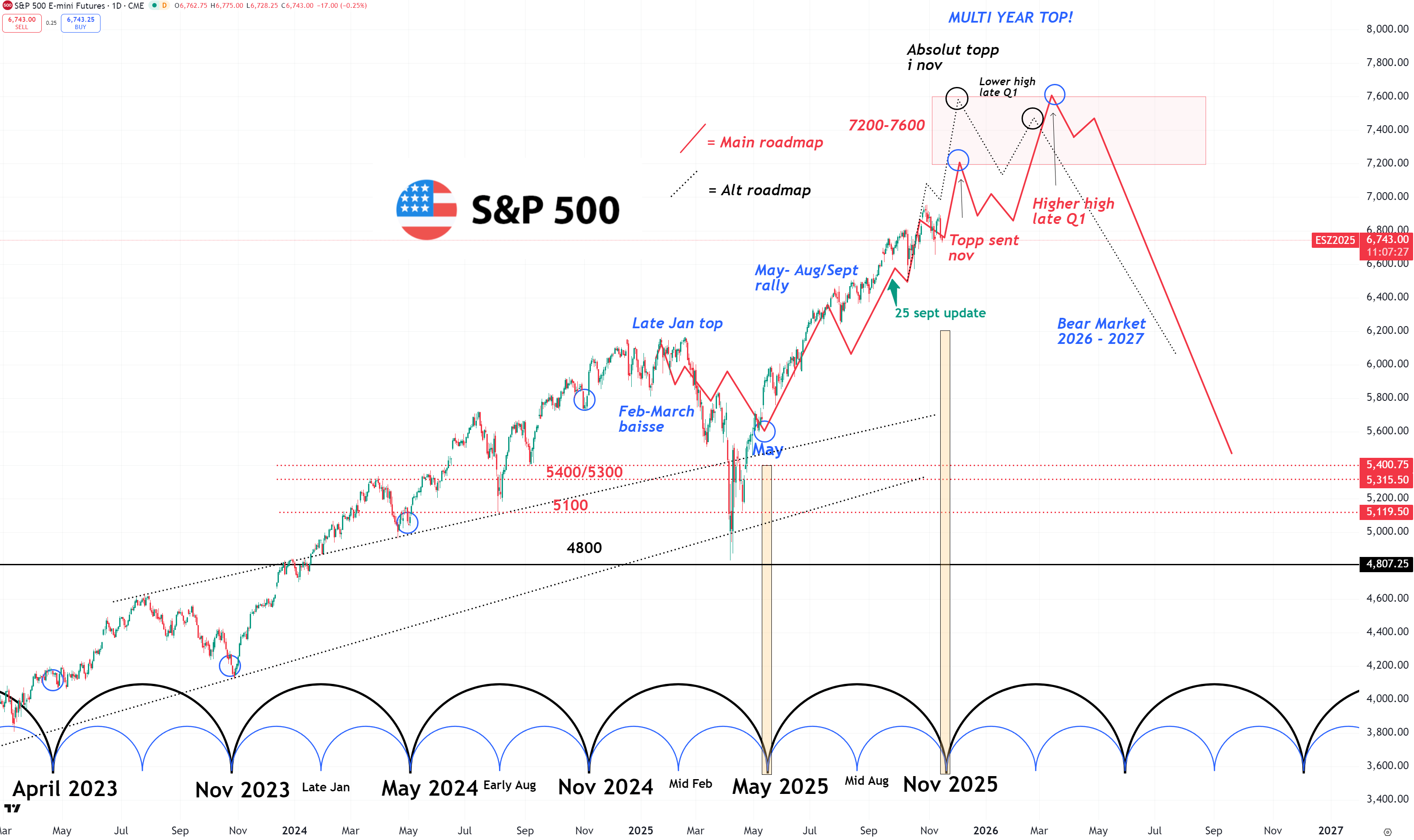 Med det sagt är börserna fortsatt starka, även om vi sett betydligt ökad volatilitet i AI-relaterade aktier den senaste veckan. Börsperioden nov-april är den historiskt starkaste på året. Selektiviteten på de amerikanska börserna är den sämsta på många år och det mest troliga är att vi ser en rotation (bättre marknadsbredd) kommande månader drivet av räntesänkningar och förhoppningar att konsumenten mår bättre 2026 än i år. Jag räknar generellt med större toppbygge kommande månader där perioden december-januari kan bjuda på förnyad rekyl och att börserna sedan går starkt in i början på Q2 2026. Sen tror jag det finns stor risk att börsfesten är över för 12-18 månader.