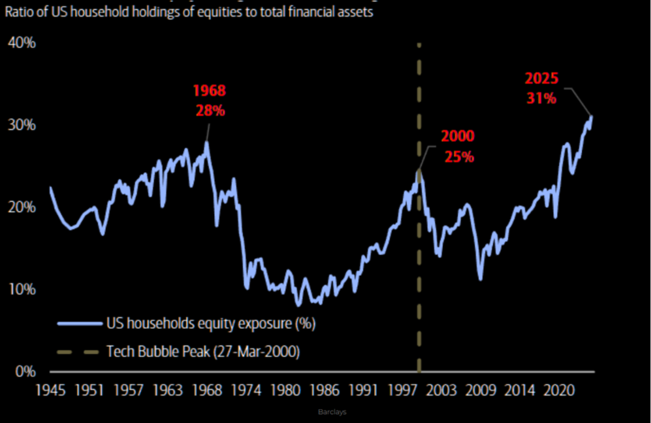- Vem äger marknaden: Amerikanska hushåll äger nu över 50 % av den amerikanska aktiemarknaden (direkt eller via fonder), medan hedgefonder endast står för cirka 2 %.