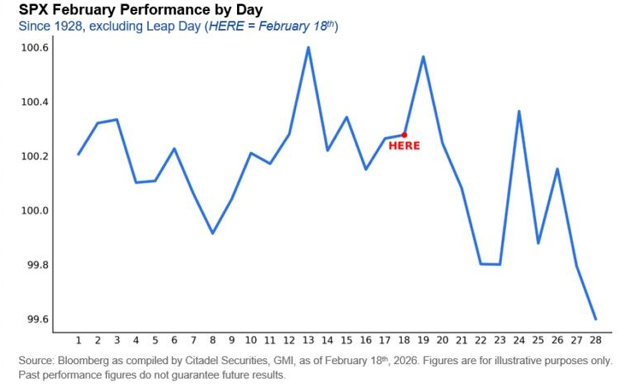 Säsongsmässigt sedan 1928 tenderar andra halvan av februari att vara framåtlutad.