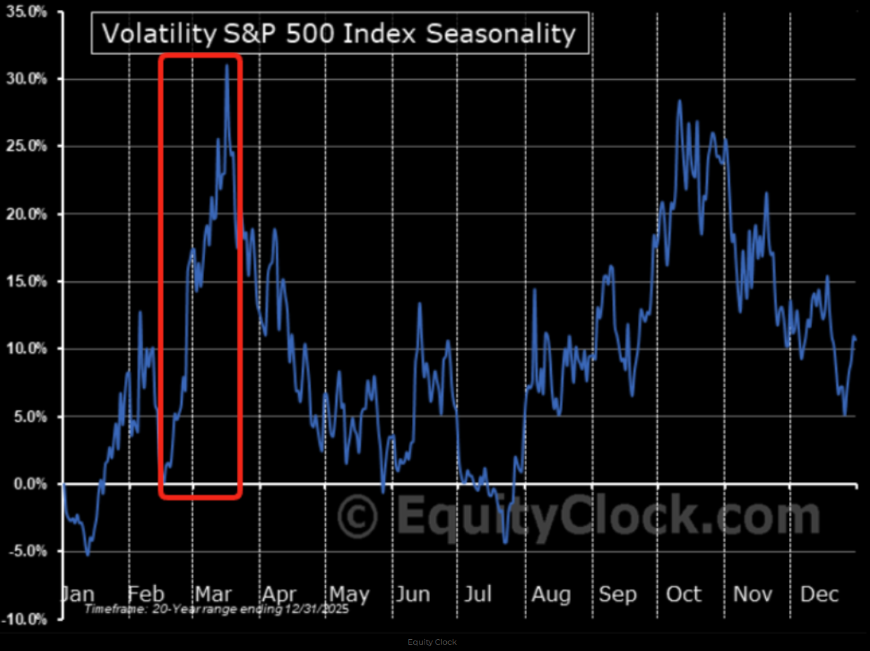 Optionslösen står för dörren imorgon och vi vet alla att dessa kan utgöra vändningspunkter i marknaden. Vi minns ju alla optionslösen i februari 2025 vartefter marknaden blev mer instabil och sedan föll med nära -20% ner mot botten i början av april. Eller februaris optionslösen 2020, där de västländska börserna höll uppe väl trots oroande virussmitta i Asien, men där börserna destabiliserades efter lösendagen och sedan föll handlöst in i mars. Jag säger inte att något liknande står för dörren nu, men faktum är att vi även rent säsongsmässigt går in i ett fönster av ökad risk nu kommande veckan!