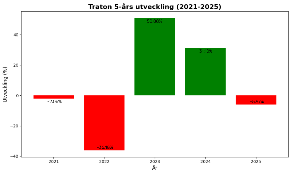 Vi kollar närmare på Volvo och Traton, hur ser utvecklingen ut de senaste åren?